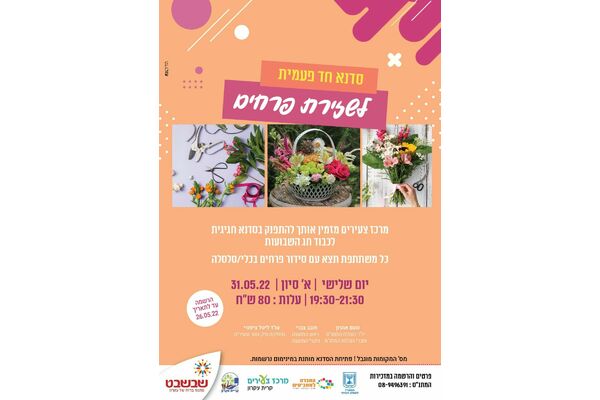 ביום שלישי 31.5 מרכז הצעירים קריית עקרון יקיים סדנת שזירת פרחים במתנ"ס שבשבט