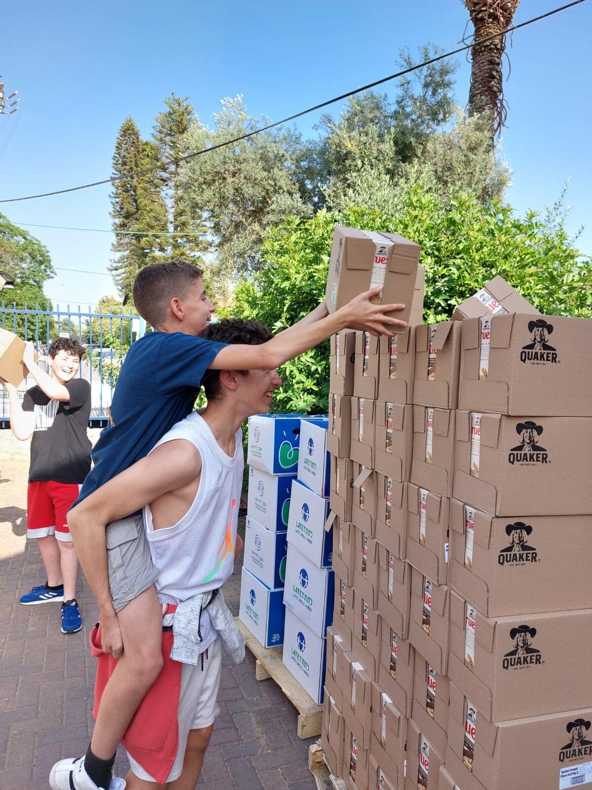 תלמידי חט"ב רבין מזכרת בתיה לקחו חלק באריזת סלי מזון למשפחות הנתמכות ע"י עמותת "בגלל הרוח"