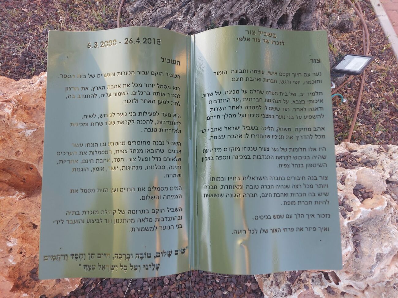 קהילת בית ספר רבין במזכרת בתיה חנכה את השביל החינוכי- פינת המורשת שהוקמה לזכרו של צור אלפי תלמיד בית הספר שנספה ב"אסון מכינת בני ציון שבנחל צפית"
