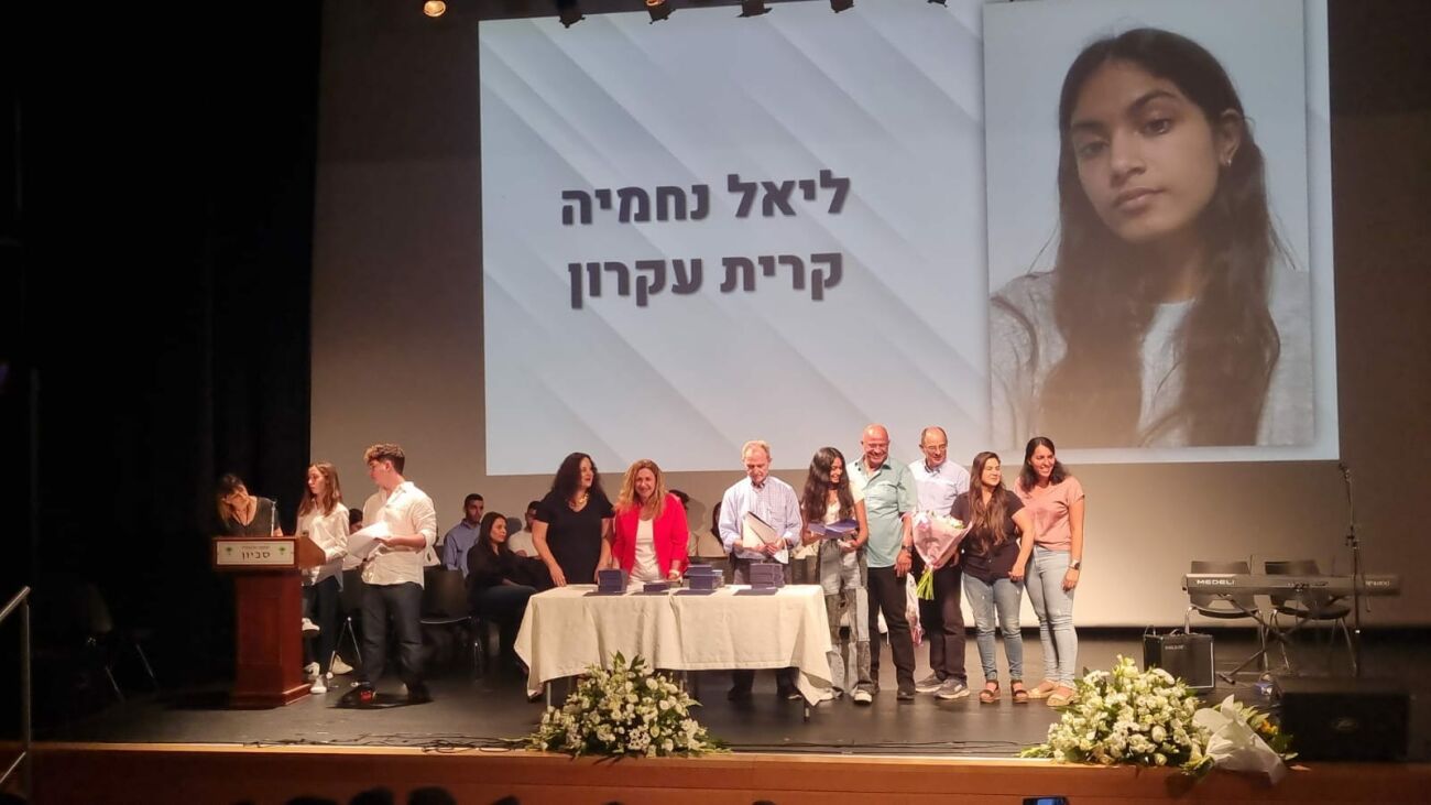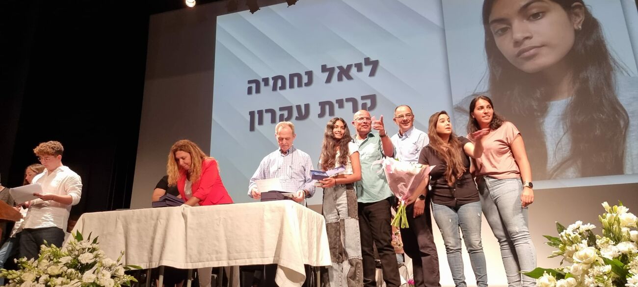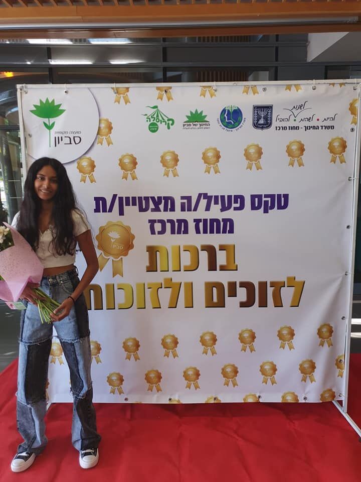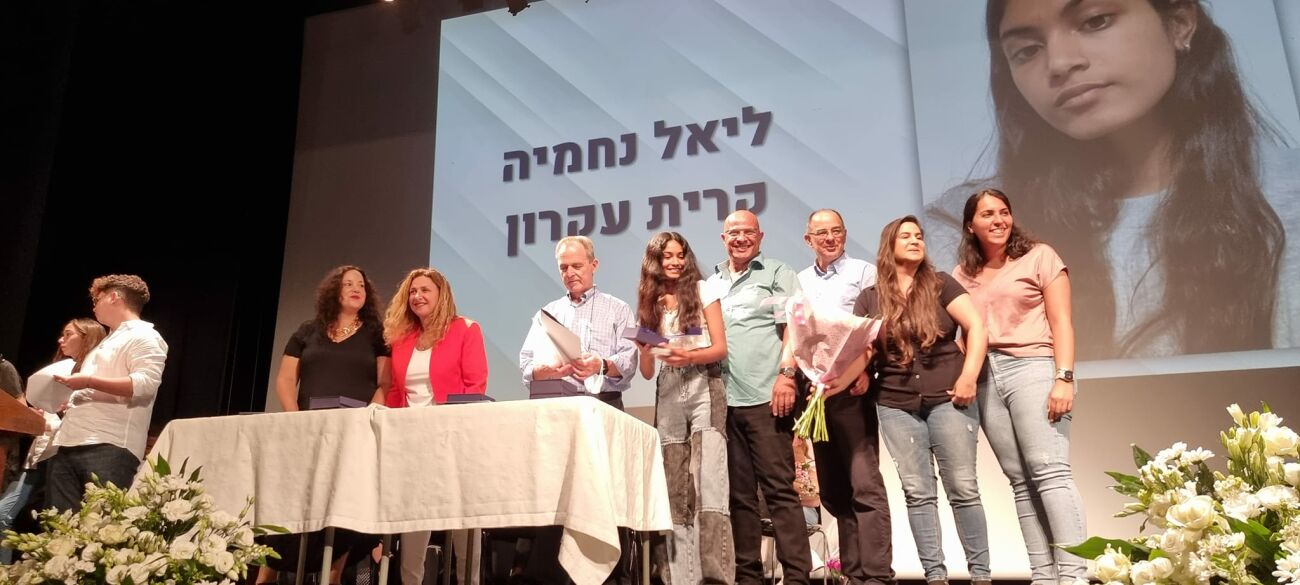 ליאל נחמיה מקריית עקרון קבלה את אות הפעיל המצטיין המחוזי של משרד החינוך
