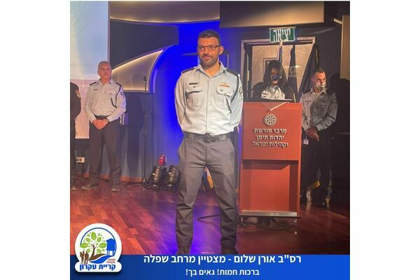 השוטר הקהילתי של קריית עקרון, רס"ב אורן שלום נבחר למצטיין מרחב שפלה במשטרת ישראל