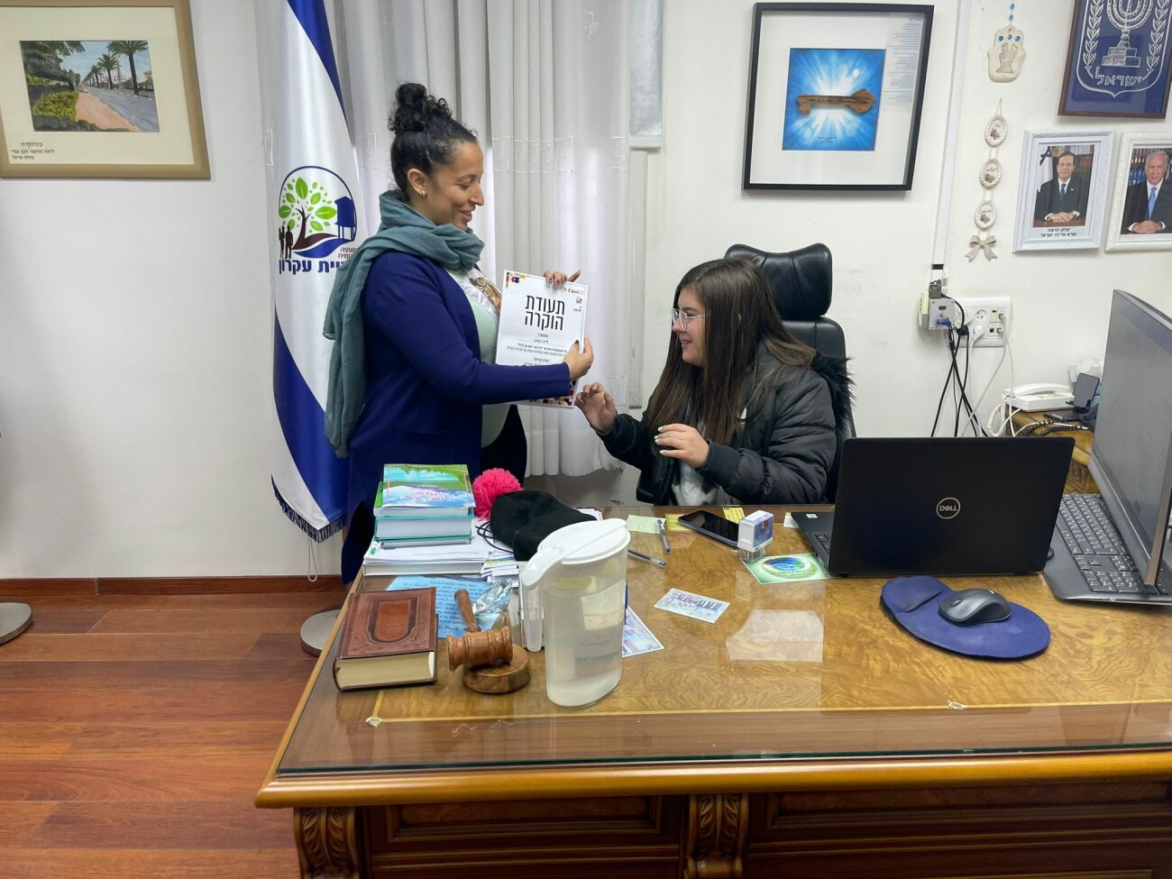 הבוקר הגיעה פרח ללשכת ראש המועצה להענקת תעודות הוקרה מטעם המתנ"ס והחברה למתנ"סים לליה הניג ולראש המועצה על השתתפותם בפרויקט.