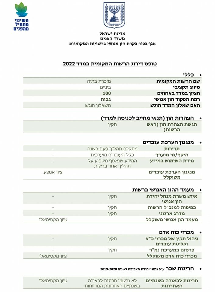 מזכרת בתיה נמצאת בין הרשויות שקבלו ציון גבוה במדד "הון אנושי" הבוחן נושאי מנהל תקין וניהול ההון האנושי בקרב הרשויות המקומיות