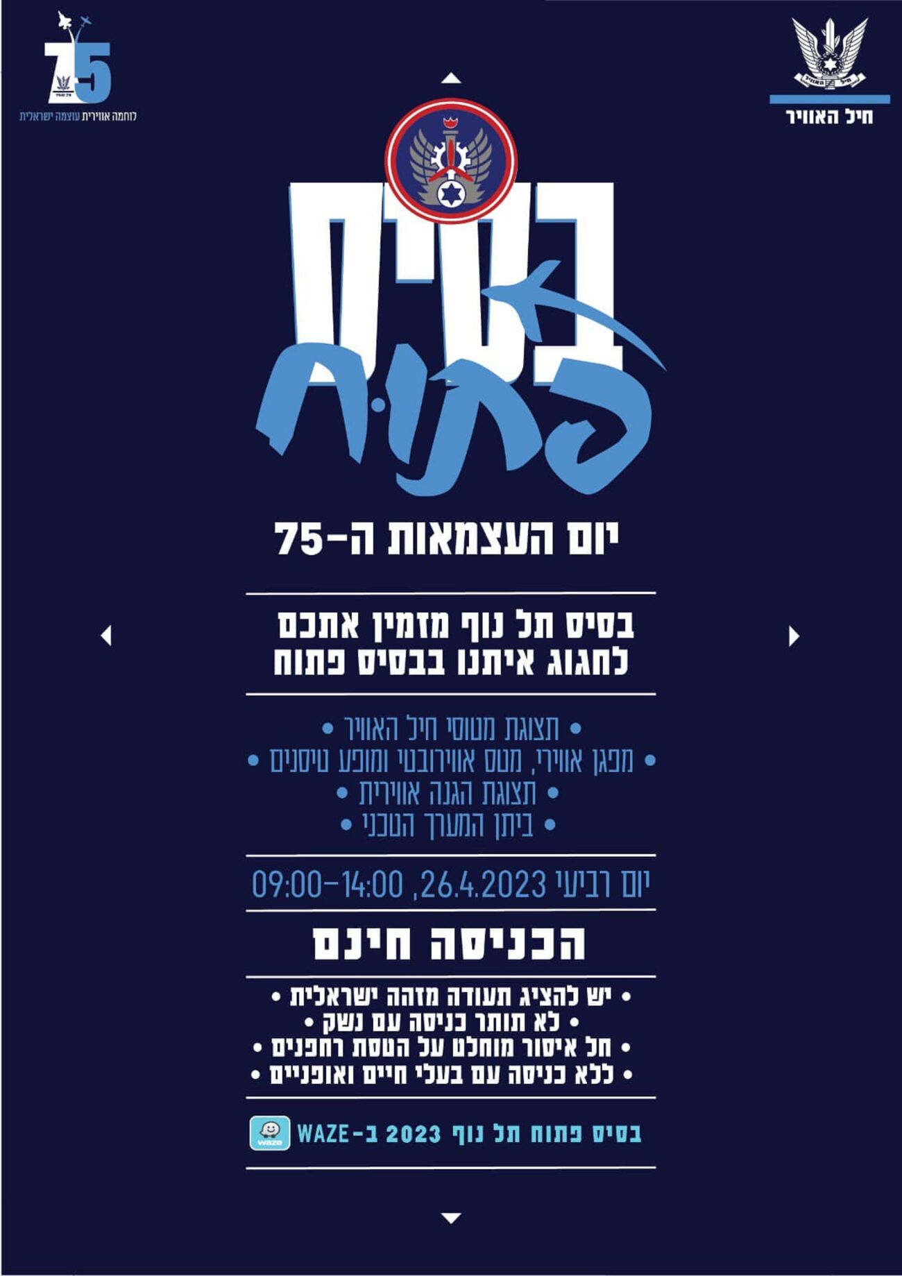 כמו כן, כבכל שנה בסיסי צה"ל יפתחו את שעריהם לציבור הרחב: בסיס חיל האוויר ע"ש עזר ויצמן ברמת דוד, בסיס חיל האוויר תל נוף, מוזיאון חיל האוויר בחצרים ובסיס מחנה "חורון" בחטיבה המרחבית שומרון.