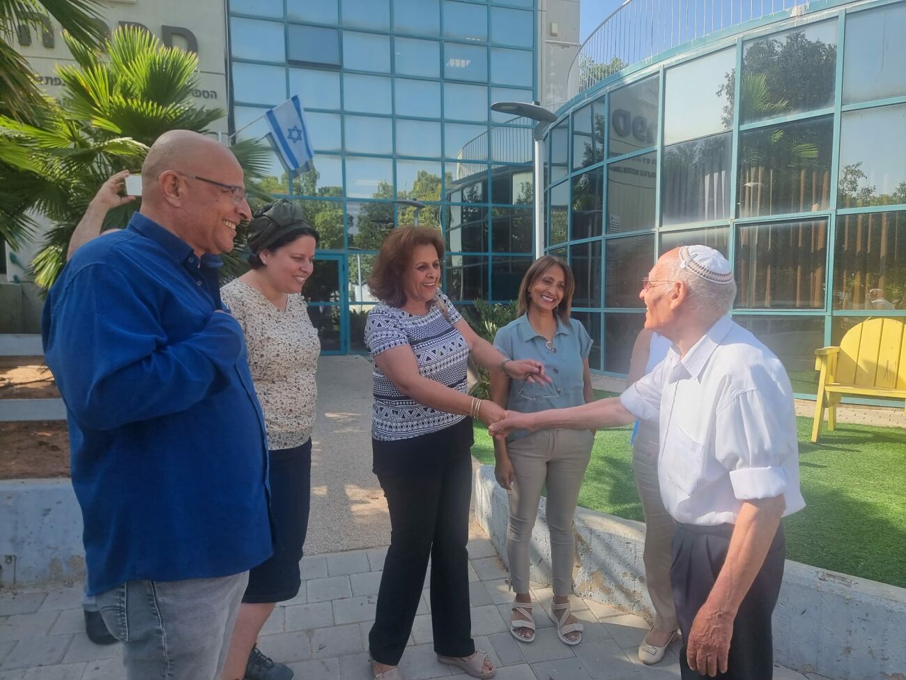 ראש המועצה, חובב צברי, ביחד עם מחזיק תיק החינוך, משה לוי, מנהלת הספרייה, ליאת ג'ראפי לוי, מנהלת אגף החינוך, אביבה וגנר ועובדות הספרייה בעבר ובהווה נפגשו עם שלום ובני משפחתו והוקירו אותו על עשייתו ותרומתו ליישוב.