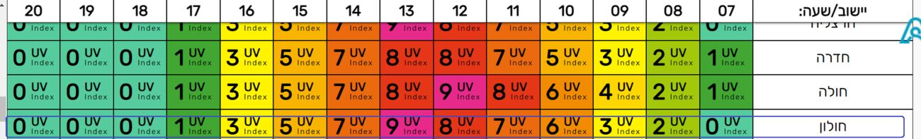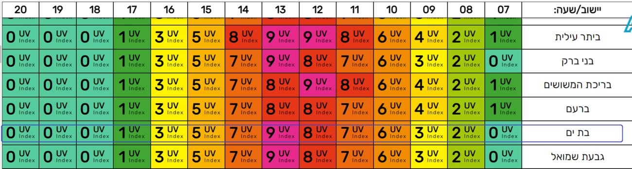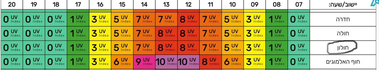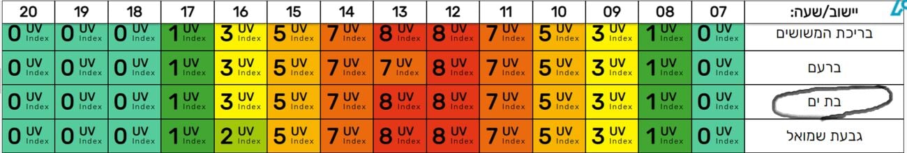 מחר (שישי 2.6) ישרור מזג אויר שרבי כשהטמפרטורות יגיעו ל40 מעלות וגם מהן השעות הבטוחות לשהות בשמש בערים ראשון לציון, רחובות, חולון, בת ים ויבנה - התחזית המלאה בכתבה