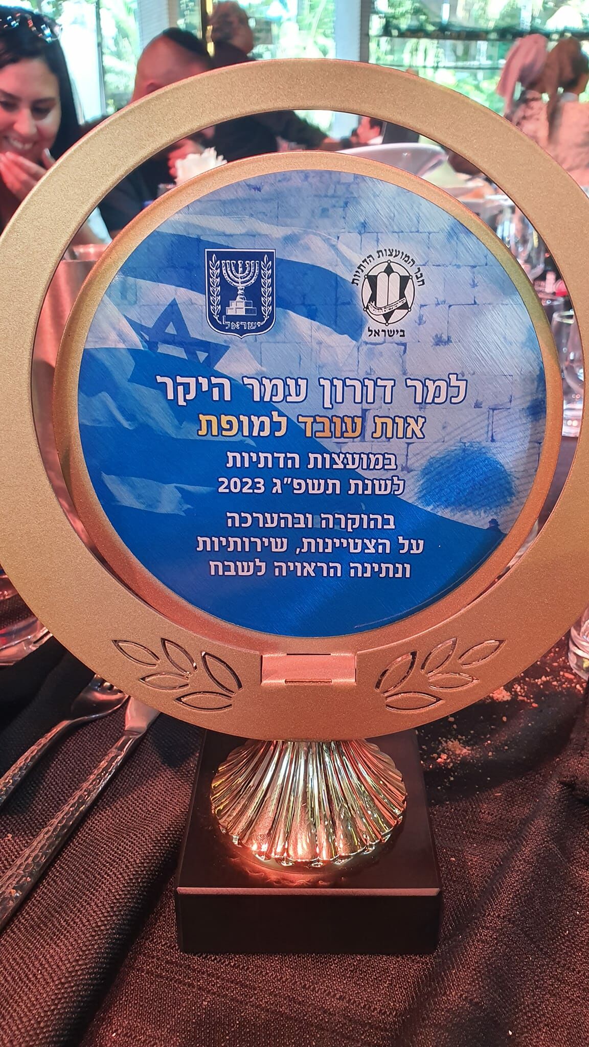 בין המצטיינים/ות נמצא עובד המועצה הדתית קריית עקרון, דורון עמר שזכה בפרס מצטיין המועצות הדתית בתחום הקבורה. אל הטקס הגיעו גם יו"ר המועצה הדתית, נועם אהרון וראש המועצה, חובב צברי שברכו את עמר על זכייתו
