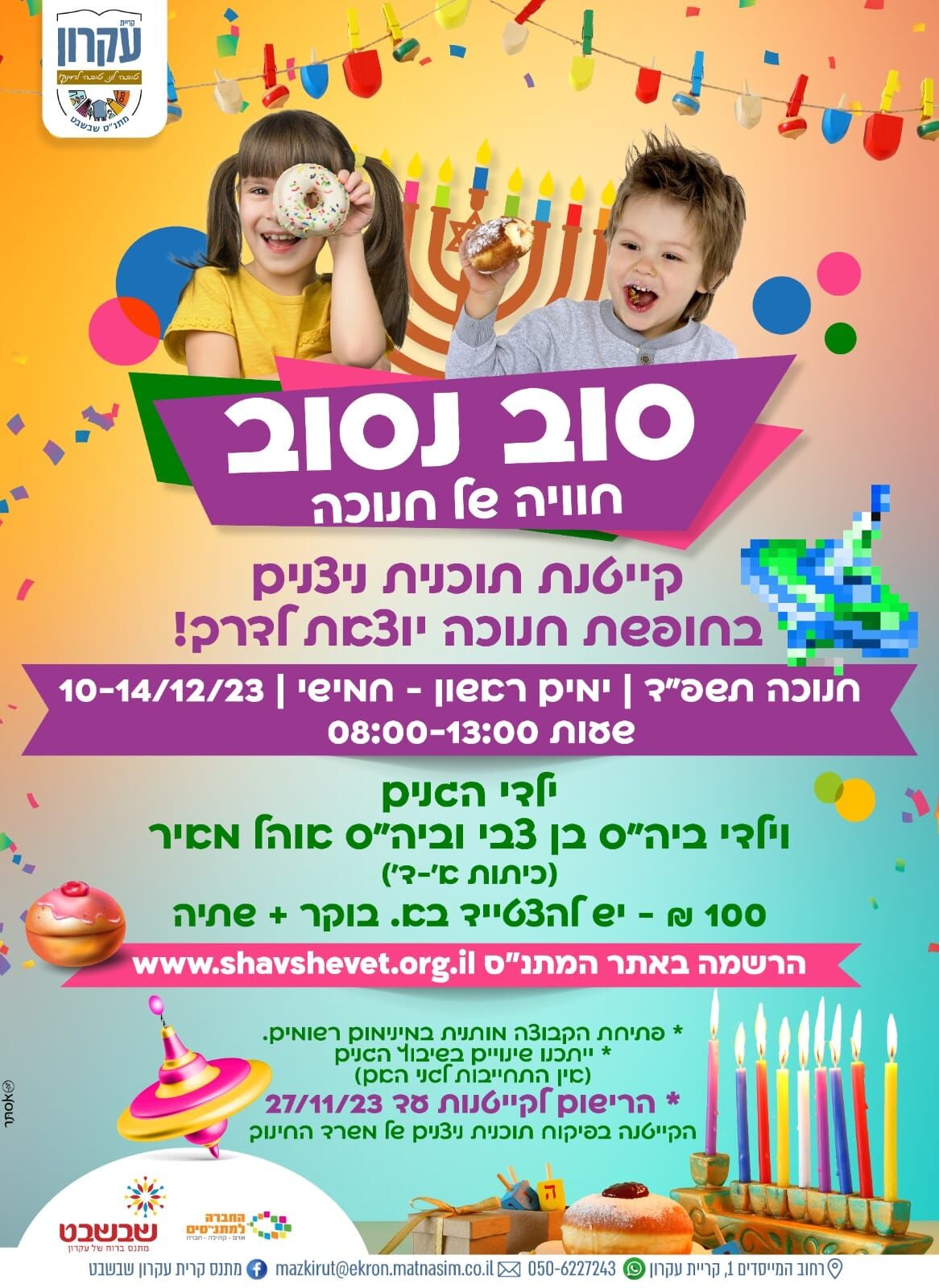 מתנ"ס קריית עקרון פתח את ההרשמה לקייטנת חנוכה לילדי הגנים ובתי הספר - ההרשמה פתוחה עד 27.11