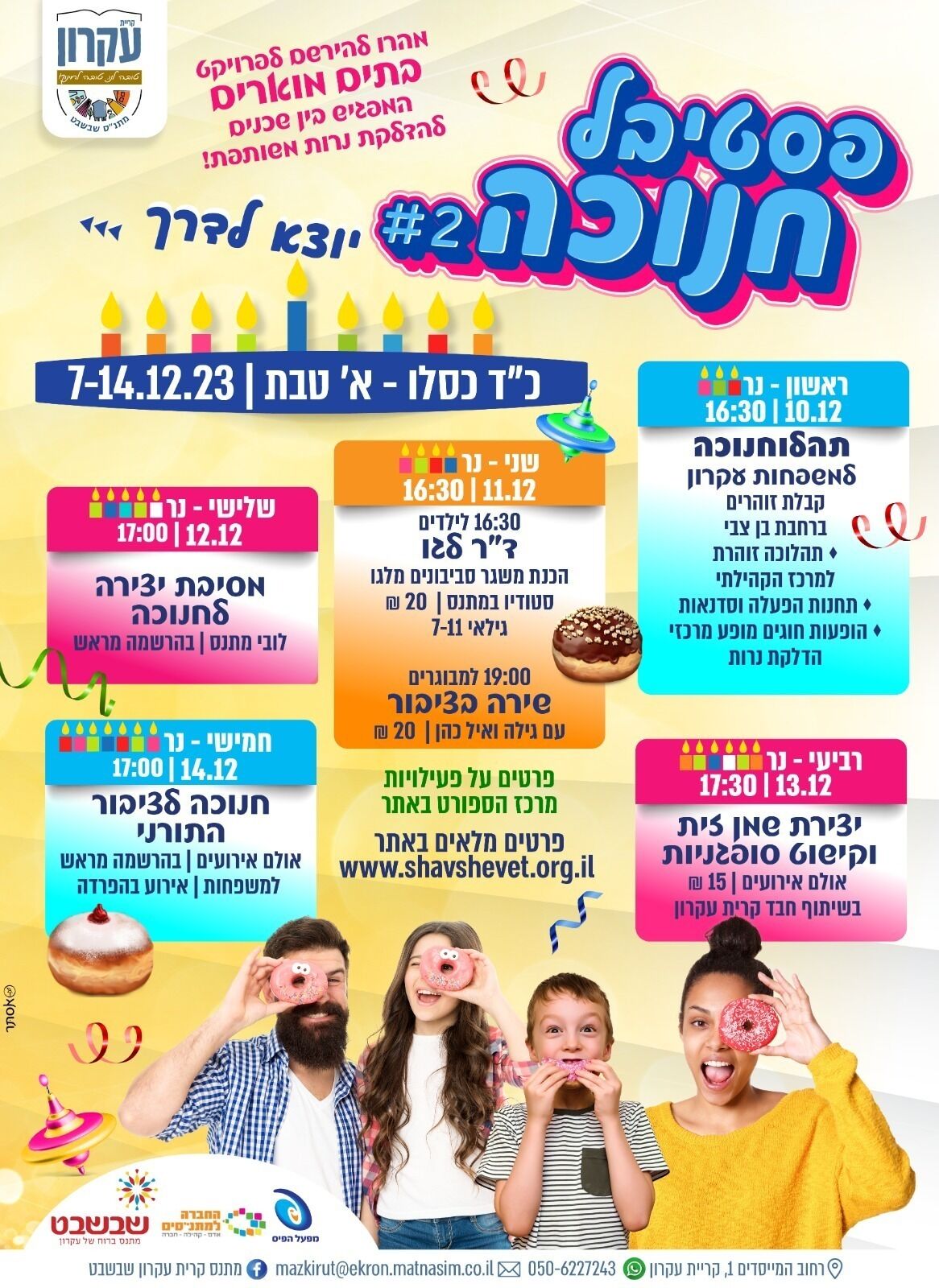 מועצת קריית עקרון מזמינה את התושבים לאירועי החג שיתקיימו ברחבי היישוב: