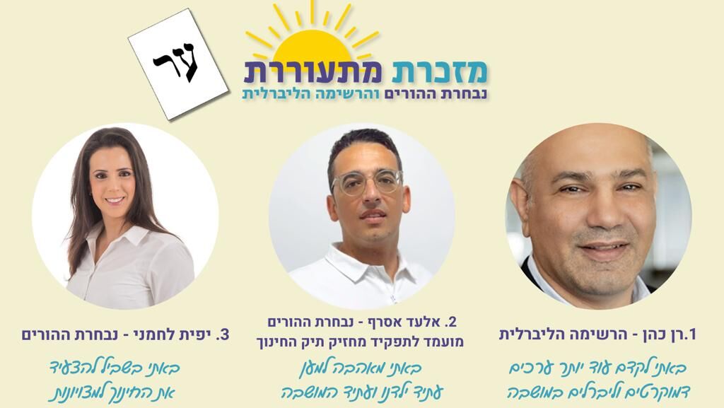 מזכרת מתעוררת נבחרת ההורים והרשימה הליברלית בראשות רן כהן שתיוצג באותיות ער
