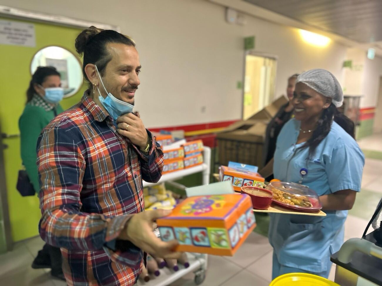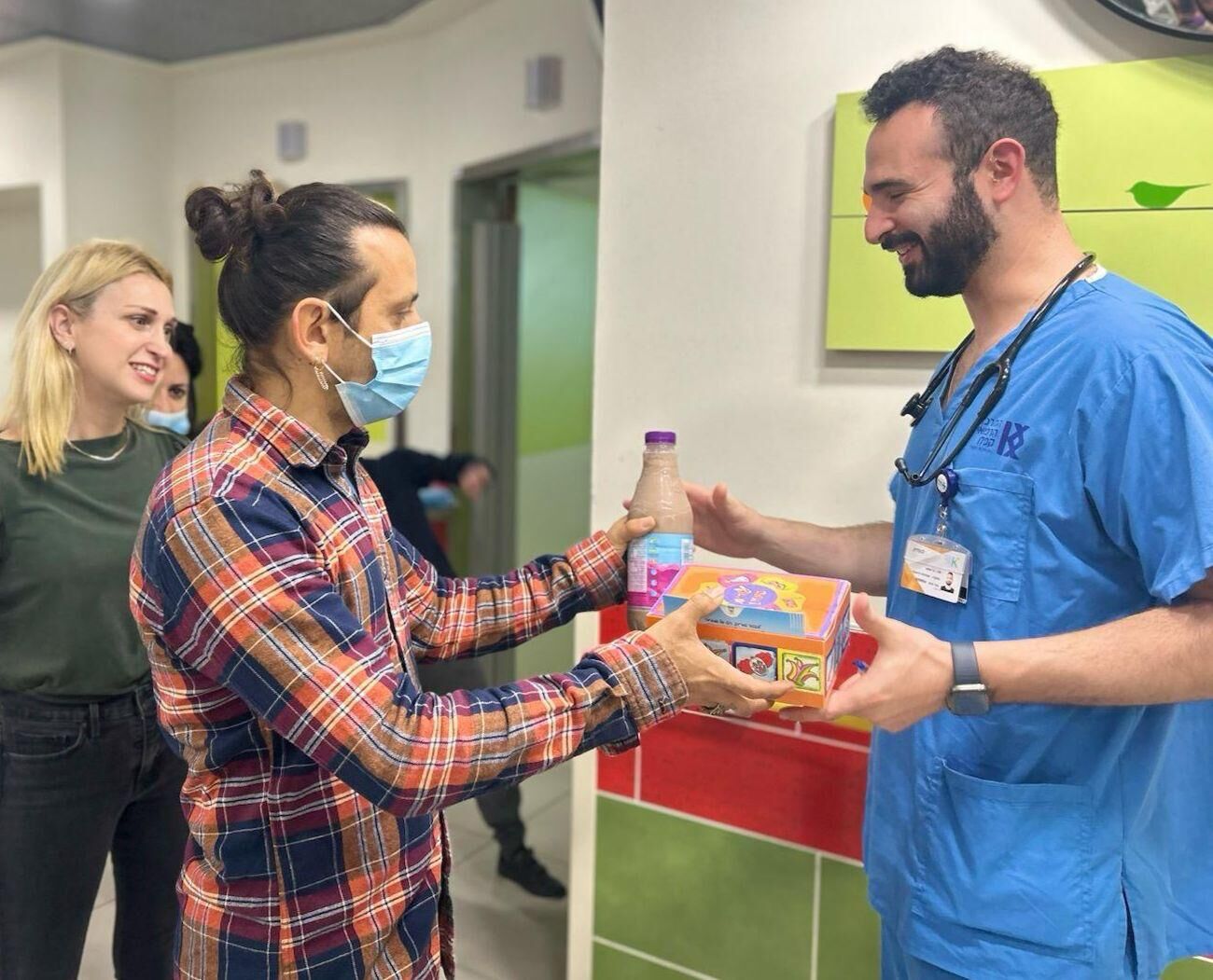 ציון ברוך וצוות מותג משקאות החלב יטבתה חילקו משלוחי מנות לחיילים ולילדים במרכז הרפואי קפלן