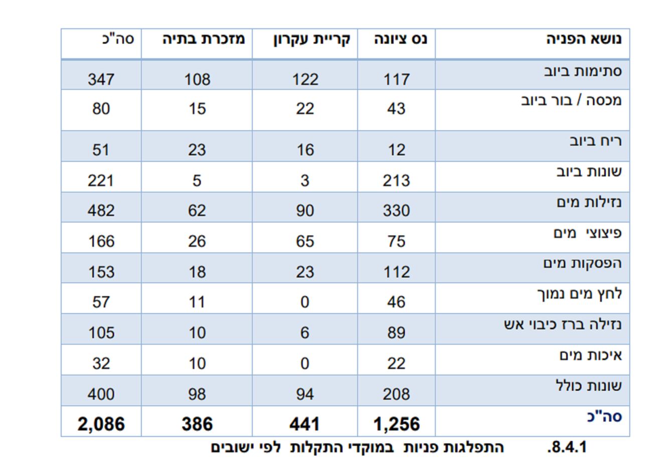 הדו"ח סוקר גם את השיבושים והתקלות במערכת הביוב והמים ביישובים
