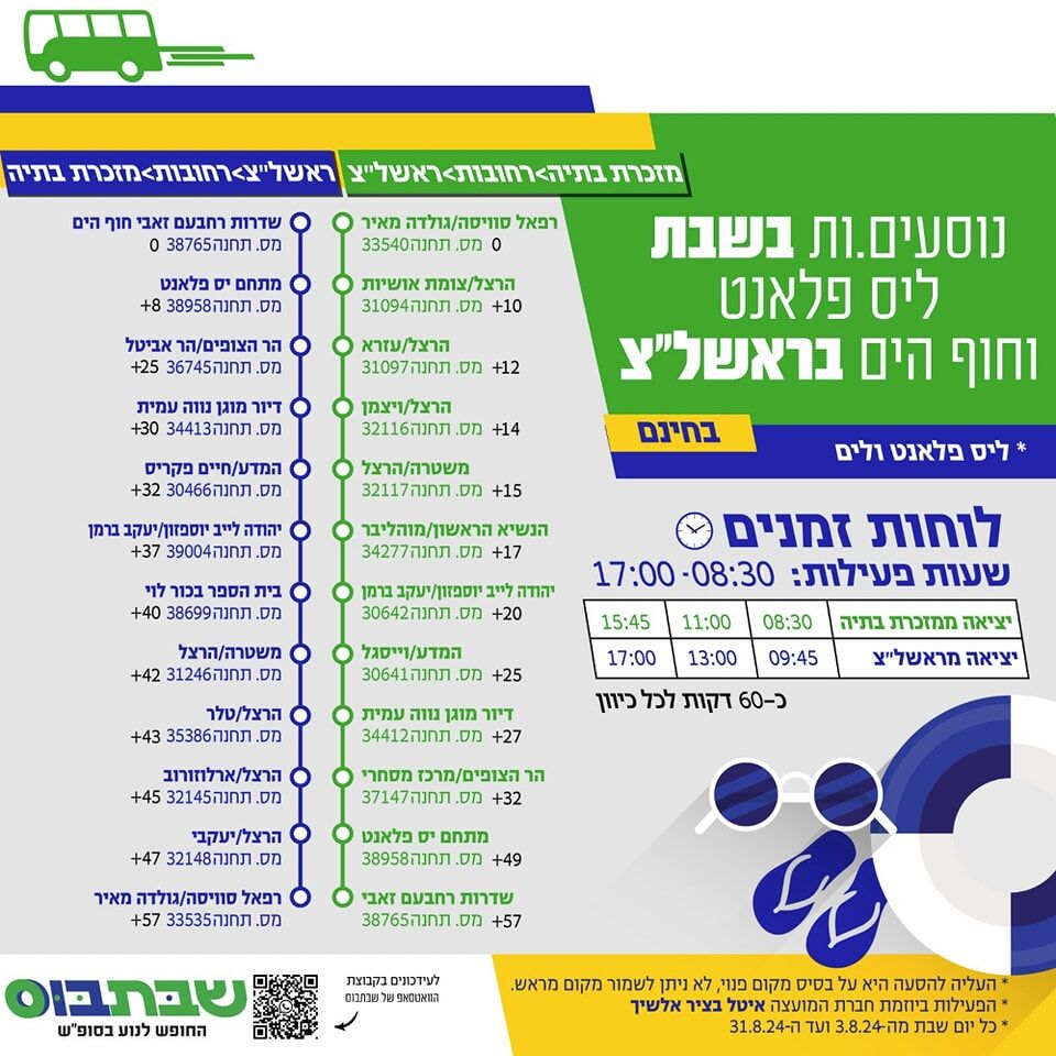 ביום שבת 31.8 ייצא מיזם התחבורה הציבורית של שבוס ממזכרת בתיה לכיוון רחובות וראשון לציון בפעם האחרונה לקיץ