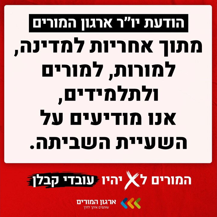 לעשות צחוק מתלמידי ישראל ולהודיע ב23:30 בלילה שמחר יש לימודים בתיכונים, כשהעיצומים ממשיכים - לא בבית ספרנו.