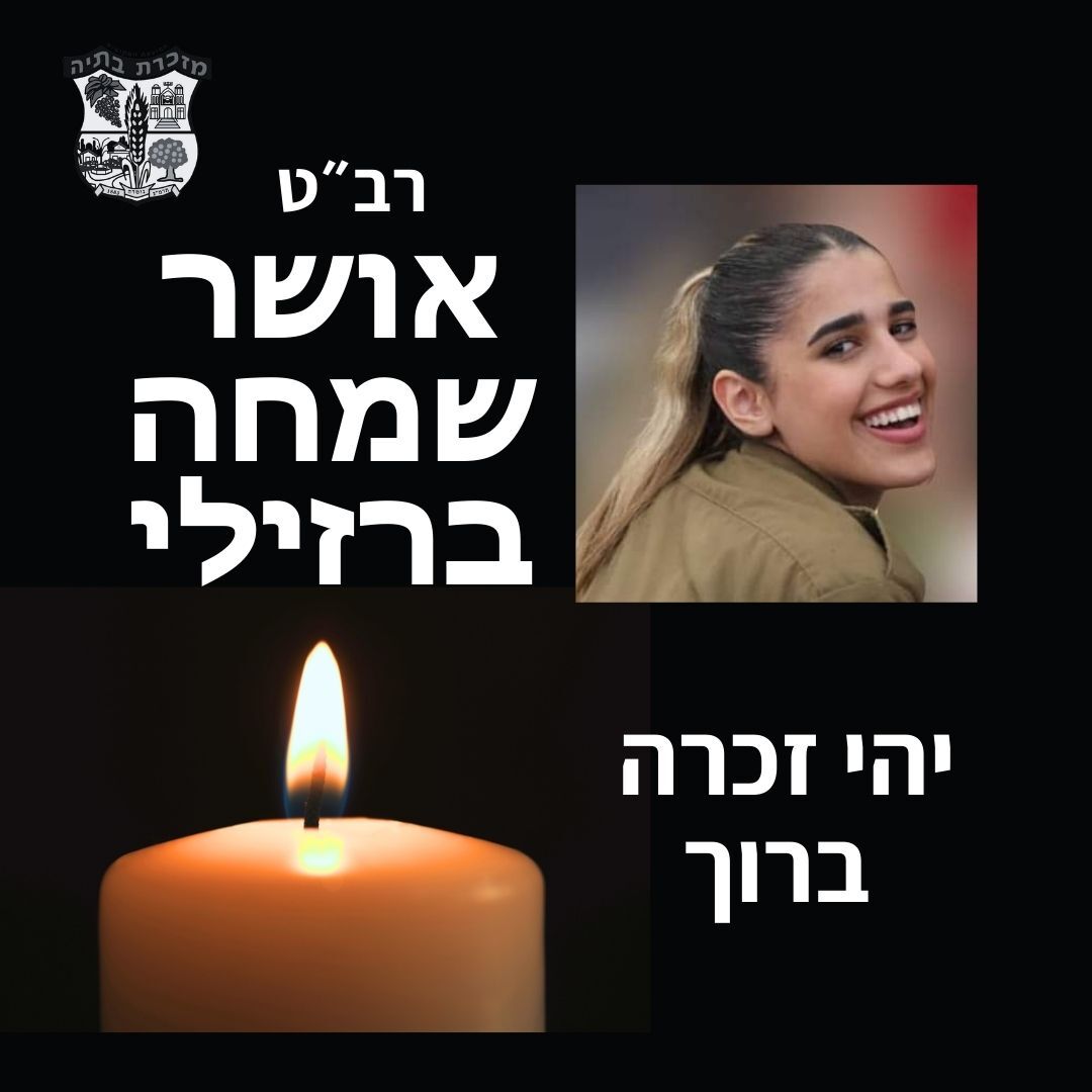רב"ט אושר שמחה ברזילי ז"ל בת 19 ממזכרת בתיה נפלה בלחימה בעוטף עזה