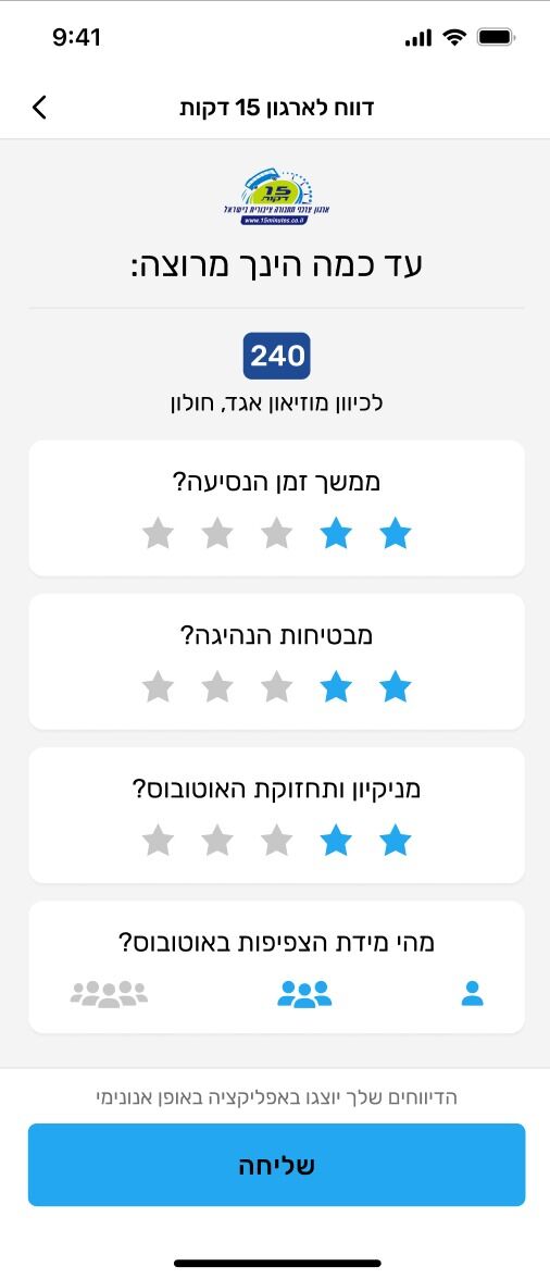 כמו כן, הושק פיצ׳ר BetterBus - ממשק ייחודי לדיווחי הנוסעים של 15 דקות על גבי אפליקציית הופאון שיחל לפעול מינואר 2025. הפיצ׳ר יאפשר לנוסעי התחב״צ לדווח ל-15 דקות על מצב התחבורה הציבורית בזמן אמת בעת הנסיעה בתחבורה הציבורית והשימוש ביישומון. בפעם הראשונה יישמע הקול של הנוסעים בתחבורה הציבורית והמידע יועבר לרשויות מקומיות שלהן מערכת הנתונים החדשה, וכן יופקו ממנו דוחות על אודות מצב התחבורה הציבורית שישוו בין קווים שונים, בין חברות התחבורה הציבורית ויידרגו את רמת השירות לפי שביעות הרצון של הנוסעים בשטח. המטרה היא להשמיע את הקול של הנוסעים מהשטח ולתת להם להשפיע על דירוג הקווים ואיכות השירות. בשלב השני, המערכת תדרג מסלולי נסיעה על פי הדירוג שייקבלו מהנוסעים, כך שהיא תעבוד כמו אתרי דירוג בתחומים אחרים כמו מלונות ומסעדות. גם מערכת זו תהיה נגישה לרשויות לקבלת מידע בזמן אמת מהנוסעים.