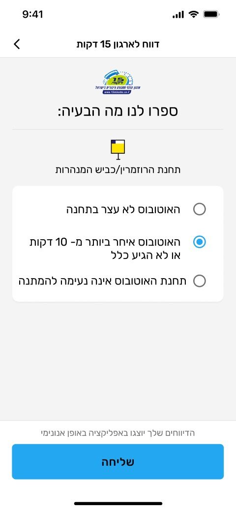 מדובר על מערכת שתבצע סנכרון בין כל מערכות המידע בנוגע לתחבורה הציבורית בשילוב קבלת דיווחים מהנוסעים בתחבורה הציבורית. לאחרונה החל הפיילוט בעיריית ראשון לציון ובארגון 15 דקות מתכננים להרחיב זאת לרשויות נוספות בכל הארץ. המערכת תאפשר קבלת מידע על מגמות השימוש, ביקושים, קווים פופולאריים, תנועת האוטובוסים ובהתאם לכך תוכל הרשות לפעול לשיפור המצב אם זה פעילות הרמזורים