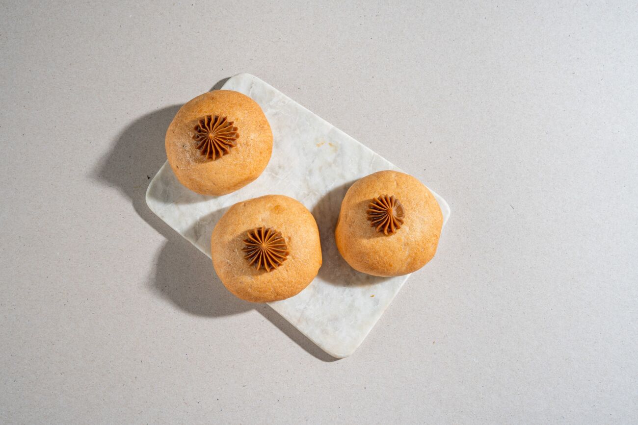 4. מחלקים את הבצק לחתיכות של 70 גרם ויוצרים כדורים.