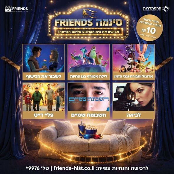 רשת מועדוני התרבות FRIENDS מציגה את "סינמה FRIENDS": סרטי קולנוע לצפייה ביתית מסובסדת בסוף השבוע, מ-26.3.2026 עד 28.3.2026