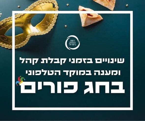 רשות המסים מודיעה על שינויים בשעות קבלת הקהל והמענה הטלפוני בחג הפורים בין התאריכים 2.3.2026 ל-4.3.2026