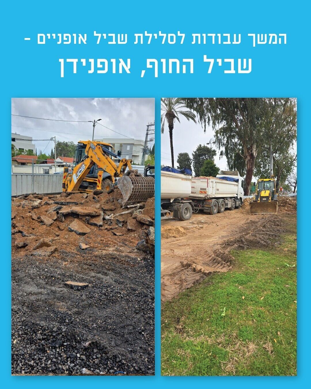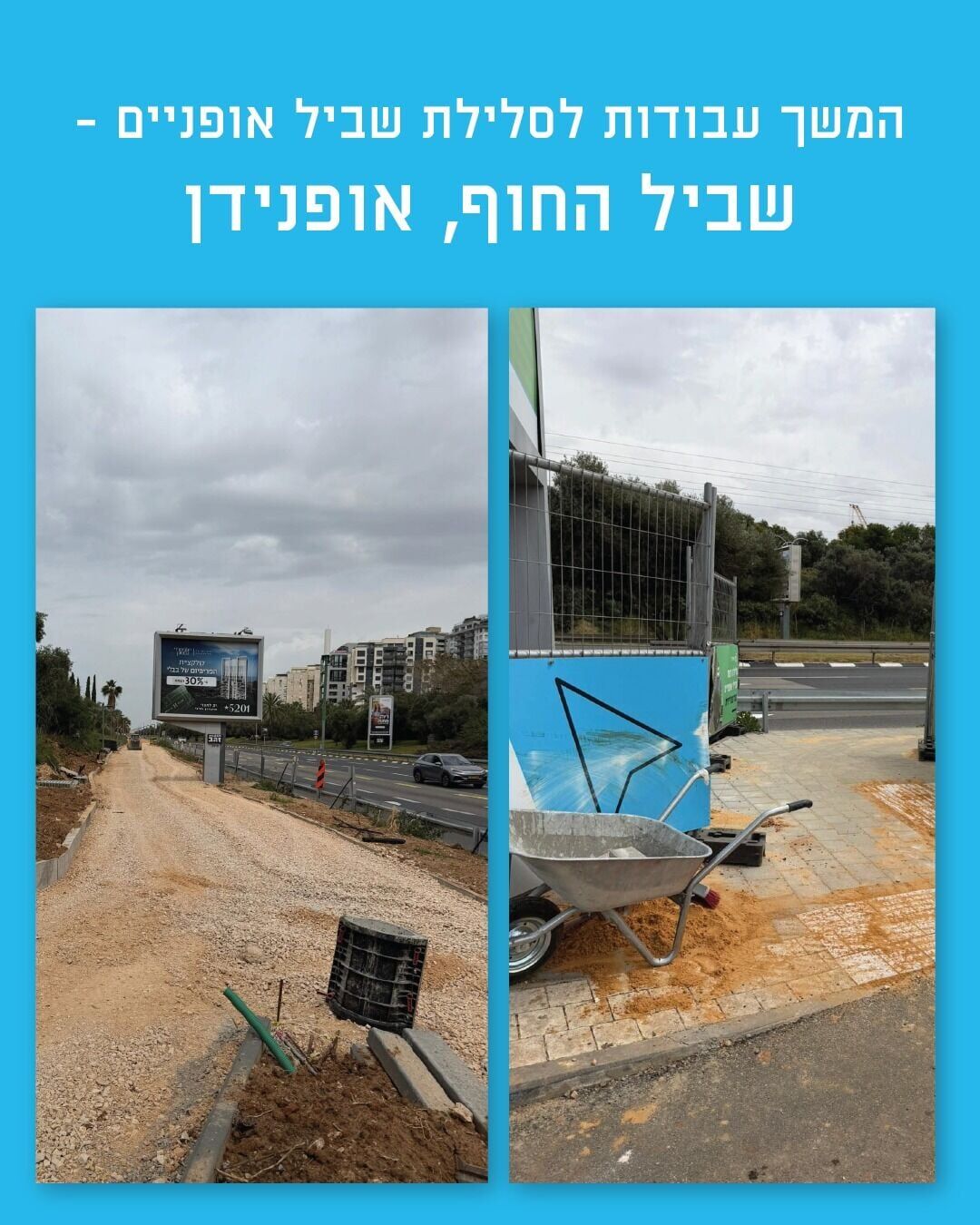 על פי העדכון מהשטח, מרכז ניהול התנועה הארצי ממשיך לפעול באופן רציף גם במתכונת חירום. במקביל, במרכז הארץ נמשכות העבודות ברשת ה״אופנידן״ לסלילת שביל האופניים ״שביל החוף״.