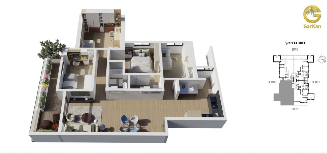106 מ"ר = 99 מ"ר + 7 מ"ר מרפסת שמש