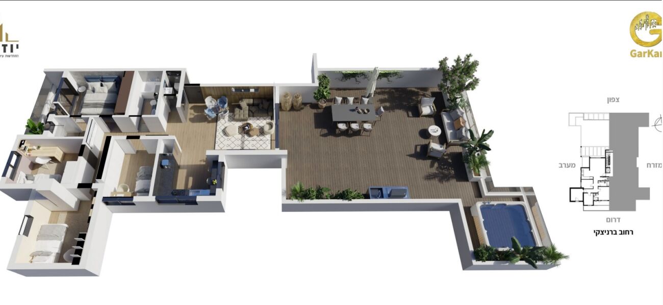 169 מ"ר = 81 מ"ר + 88 מ"ר מרפסת שמש