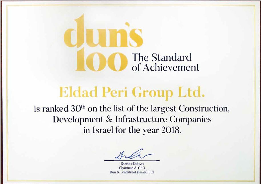 החברה זכתה להיות מדורגת במקום ה- 28 של החברות המצליחות במשק הישראלי על פי הדירוג של חברת 100 DUN'S המשקפת בדירוגה את המציאות העסקית של החברות בישראל בענפים: נדל"ן, תקשורת , הייטק ועוד