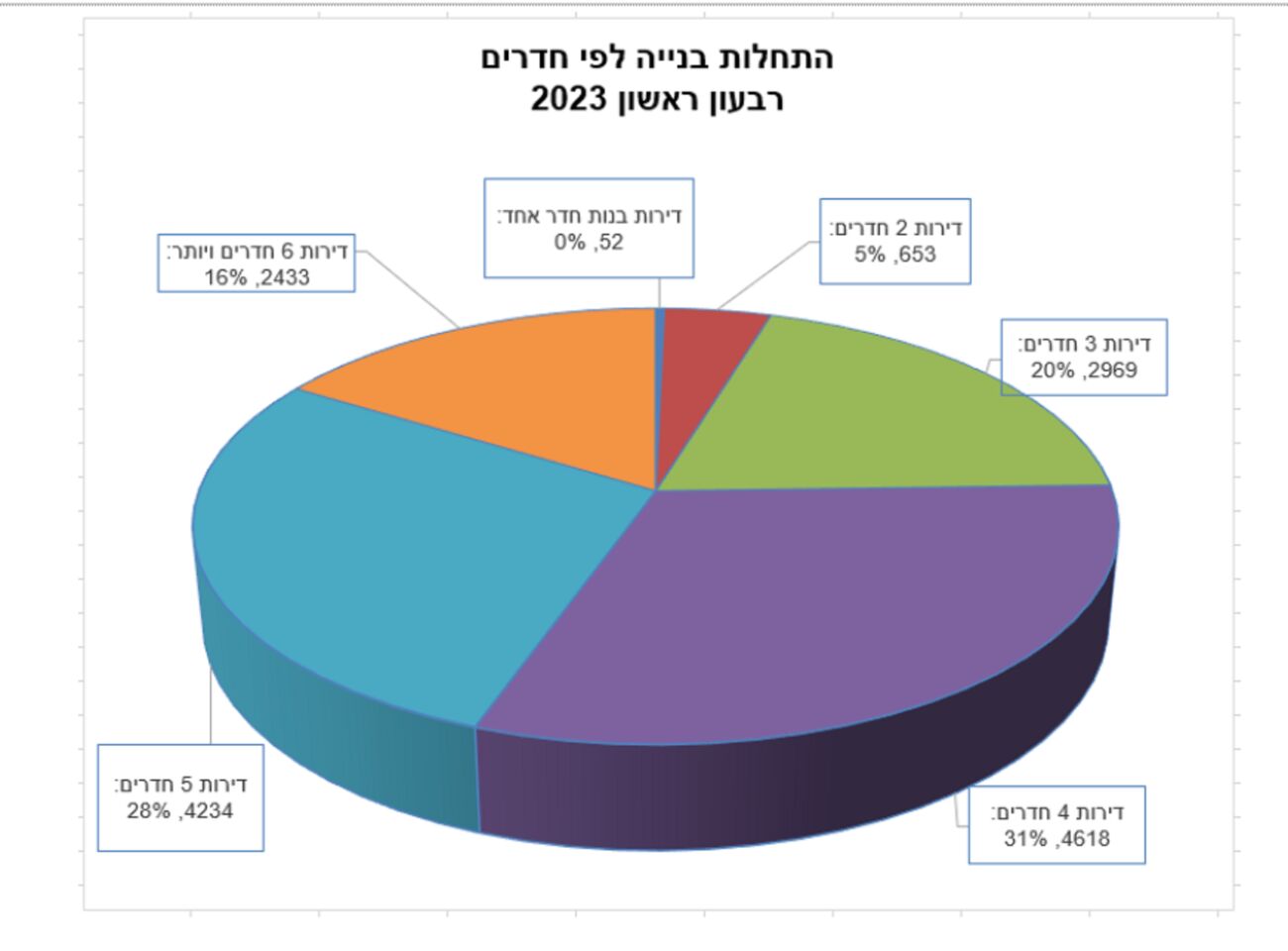 זינוק בבניית דירות 3 חדרים ברבעון הראשון של 2023, צניחה בבניית דירות 4 חדרים