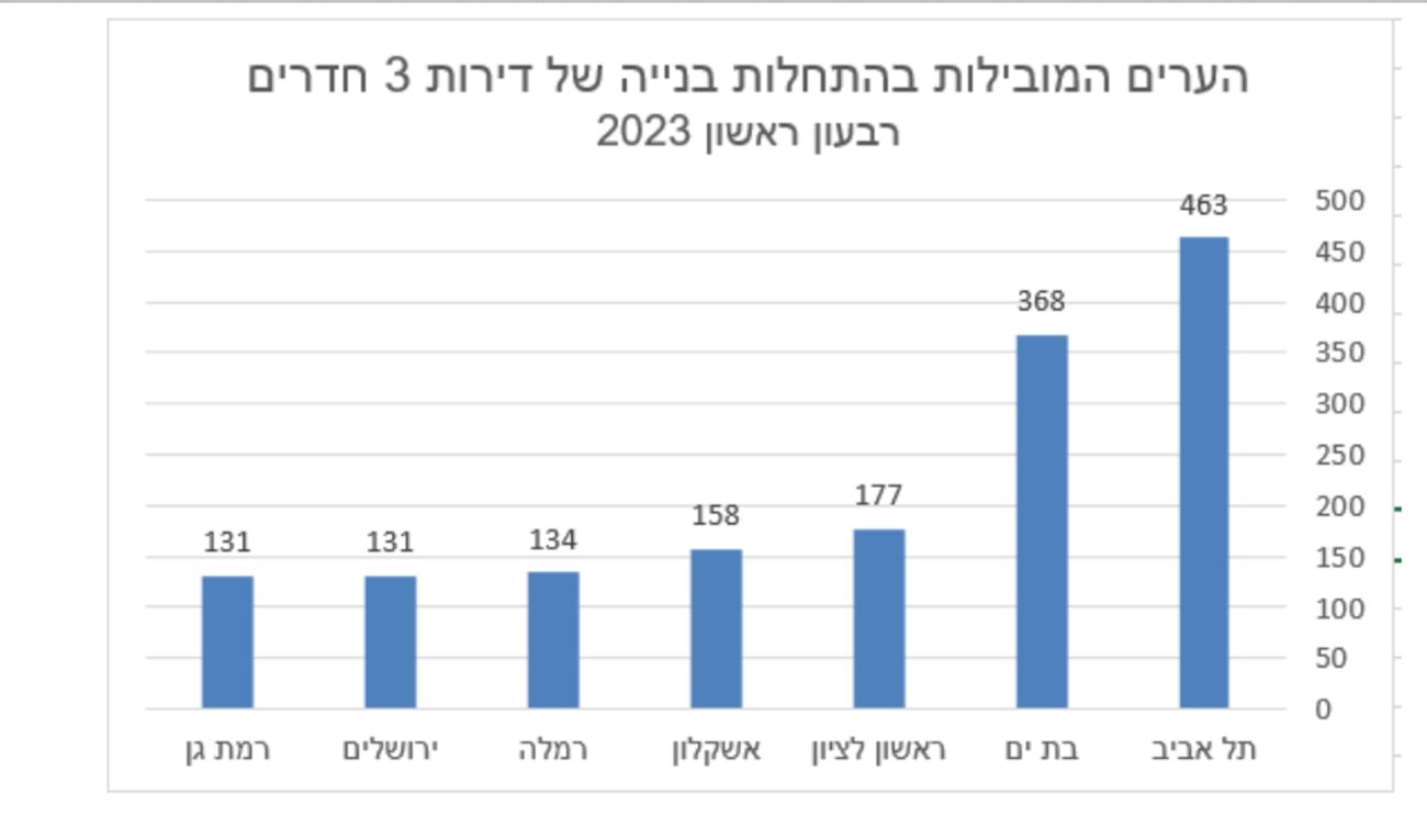 הערים המובילות בבניית דירות 3 חדרים בתקופה הנבדקת הן:
