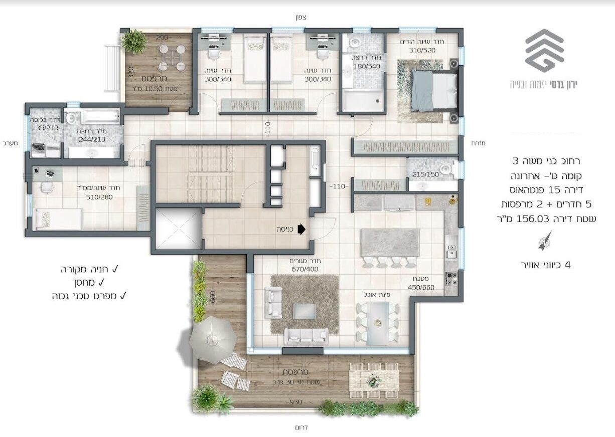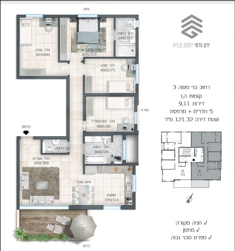 למכירה דירת 5 חדרים חדשה בקרבת קניון רחובות! 121 מ"ר + מרפסת 20 מ"ר+ ממד+ מחסן