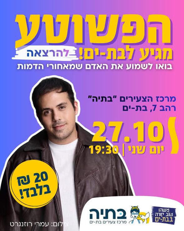 ביום שני 27.10 הפשוטע מגיע למרכז הצעירים של בת ים