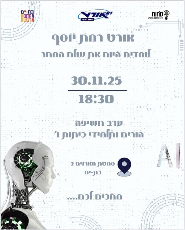 הצצה לעולם המחר: אורט רמת יוסף בבת-ים מזמין הורים ותלמידי כיתות ו' העולים לחטיבת הביניים, לערב חשיפה חגיגי ב-30.11.25