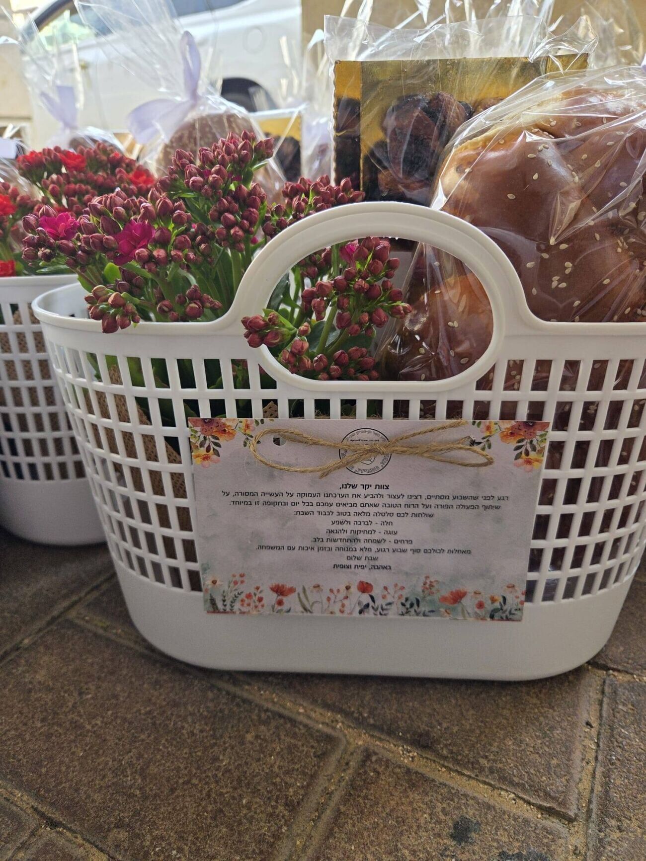 לסלסלות שחולקו צורפה ברכה אישית מהמנהלת יפית ומהסגנית צופית. בברכה הוסבר כי מטרת המחווה היא להוקיר תודה על העשייה המסורה, העמוקה והמקצועית של הצוות, וכן להעריך את שיתוף הפעולה והרוח הטובה שחברי הצוות מביאים עמם מדי יום בתקופה זו. עוד צוין בברכה המשמעות מאחורי פריטי השי: החלה מסמלת ברכה ושפע, העוגה נועדה למתיקות ולהנאה, והפרחים נועדו להביא שמחה והתחדשות בלב.