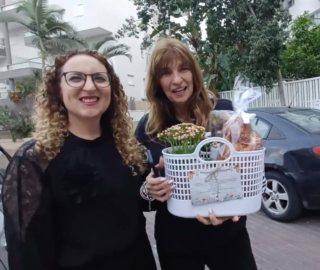מחווה של הנהלת בית ספר "בן גוריון" בבת ים: המנהלת חילקה סלסלות שבת אישיות בבתי המורים וצוות ההוראה