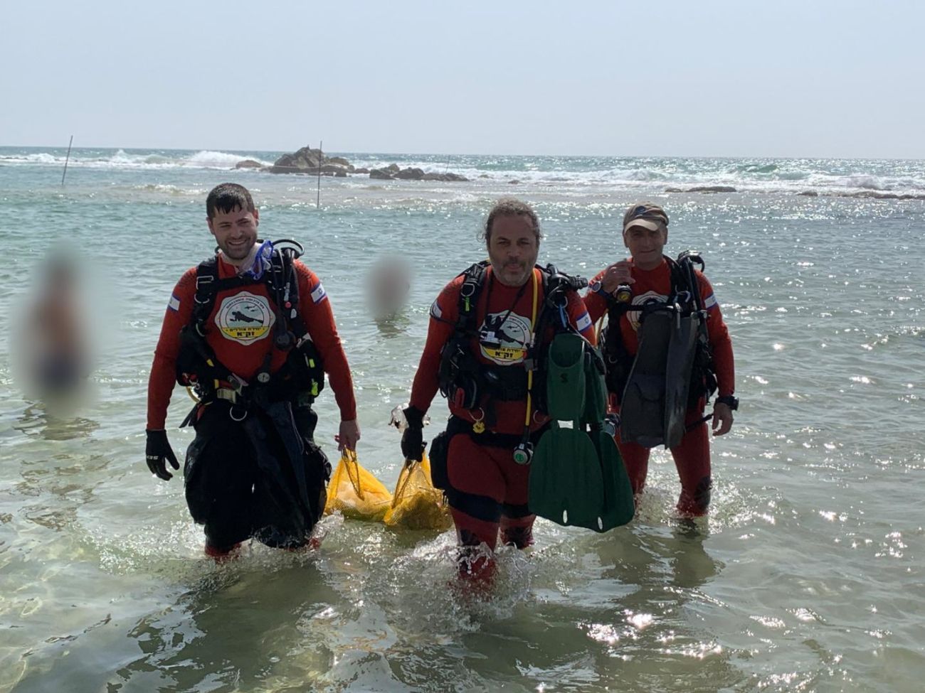 מצורף סרטון... צוללני זק"א מוציאים אשפה מתחתית חוף הים של בת ים