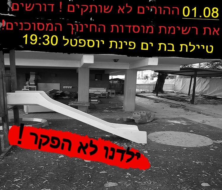 ההפגנה תיערך ביום חמישי 1.8 ב19:30 בטיילת בת ים פינת יוספטל