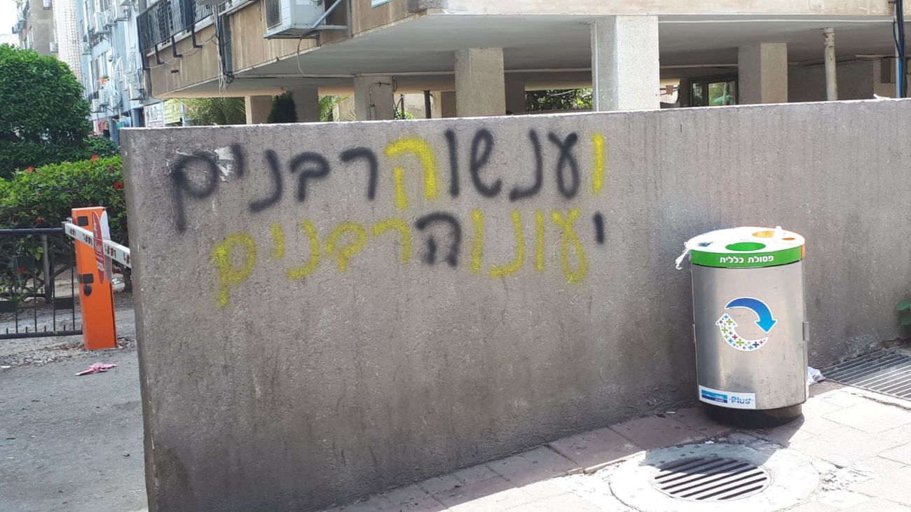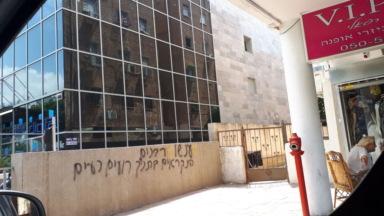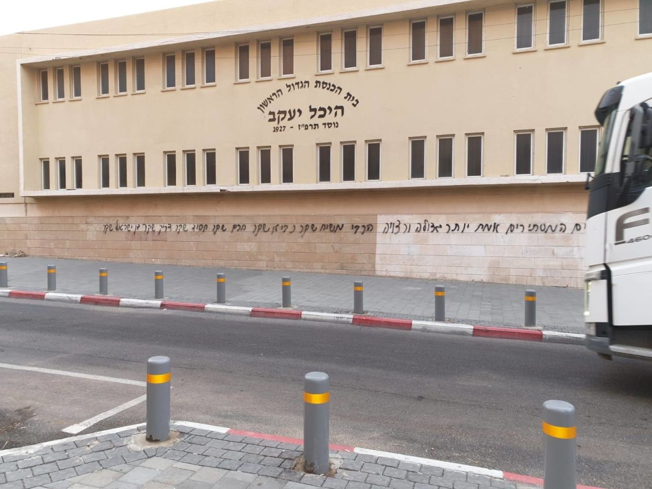 הגרפיטי הראשון שהתגלה הבוקר בבית הכנסת היכל יעקב