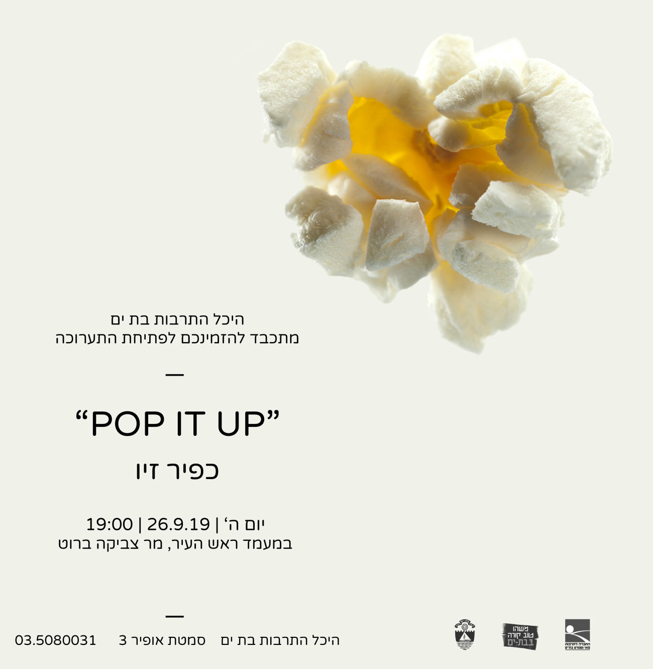 במסגרת התערוכה בהיכל התרבות יציג הצלם הבינלאומי, כפיר זיו, את עבודותיו בתחום הצילום. התערוכה נקראת "POP IT UP". הפתיחה תתקיים ביום חמישי הקרוב בשעה 19:00, סמטת אופיר 3 במעמד ראש העיר, צביקה ברוט.