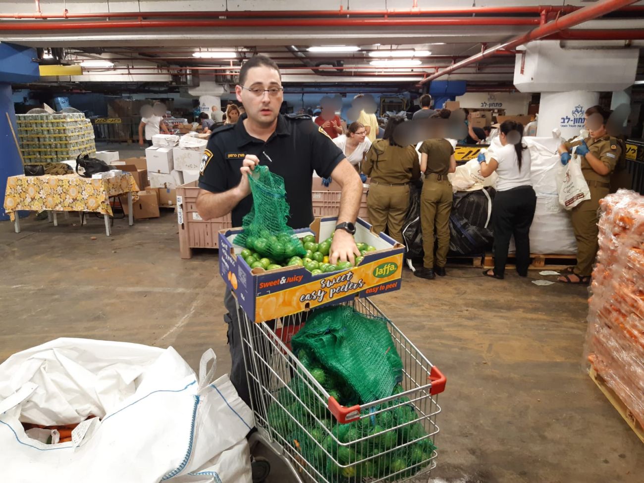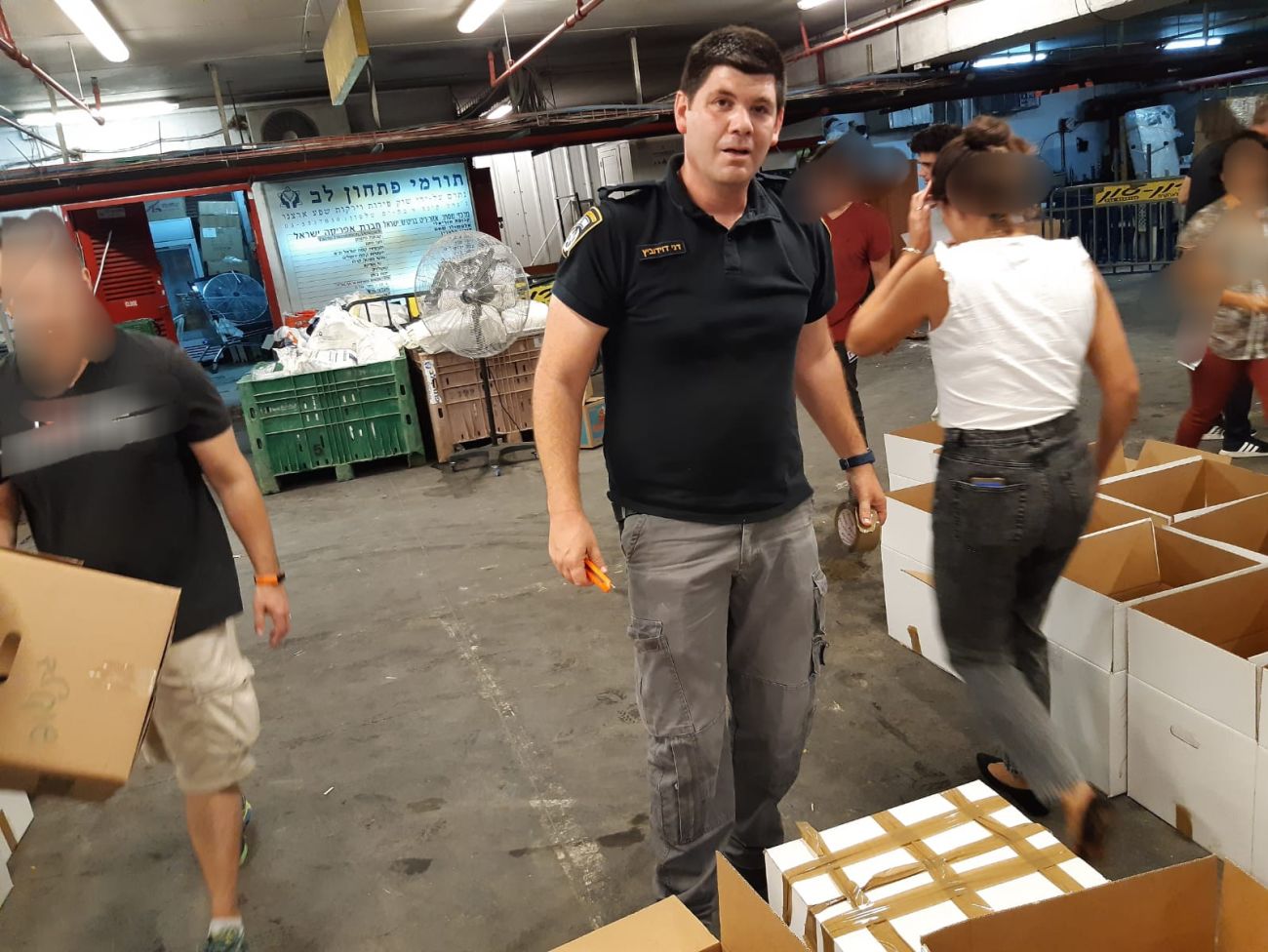 פעילות איסוף המזון נערכה במתחם עמותת פתחון לב. צילום דוברות המשטרה