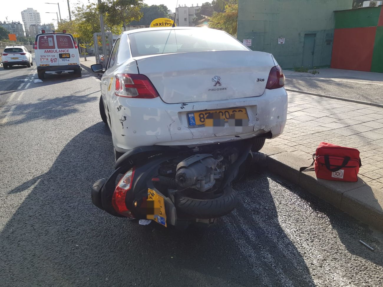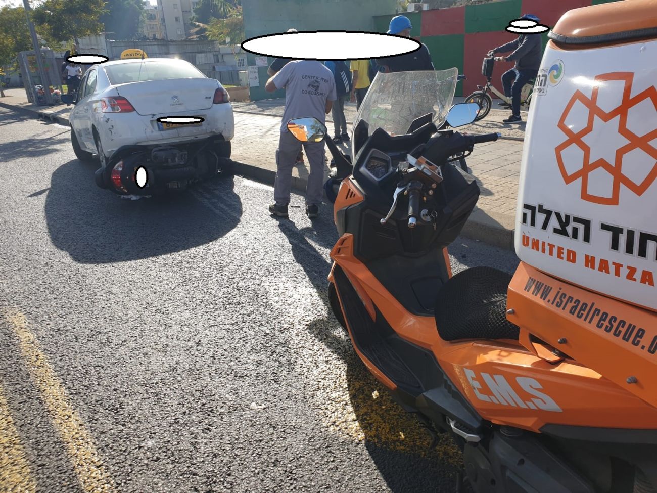 "מדובר בתאונה עם מעורבות מונית וקטנוע. הענקנו סיוע ראשוני בזירת התאונה לרוכב הקטנוע כבן 17 שנפצע באורח בינוני".