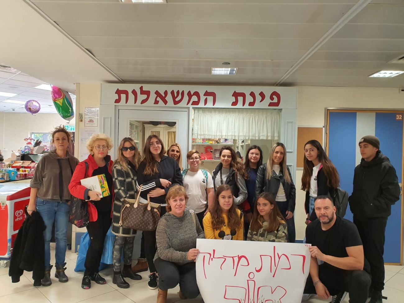 וועד ההורים ותלמידי בית הספר מקיף רמות בבת ים נסעו לשמח ילדים במחלקה האונקולוגית בבית החולים דנה בתל אביב מצוידים בסופגניות , סביבונים ומתנות לילדים.