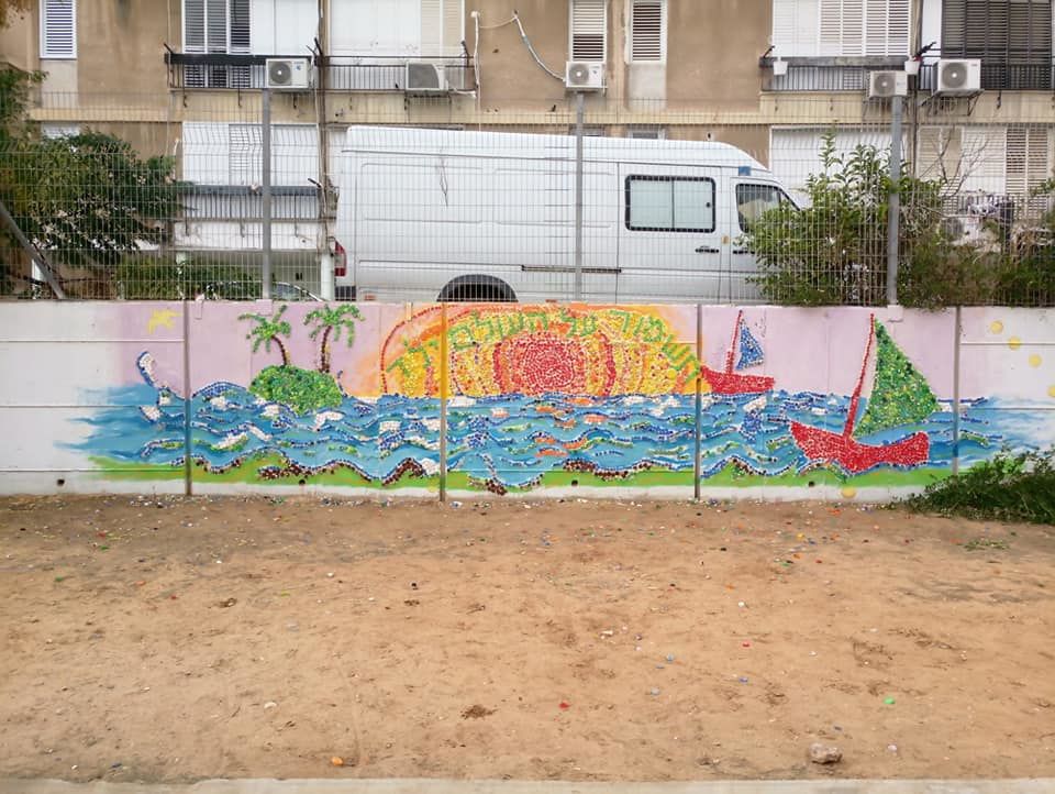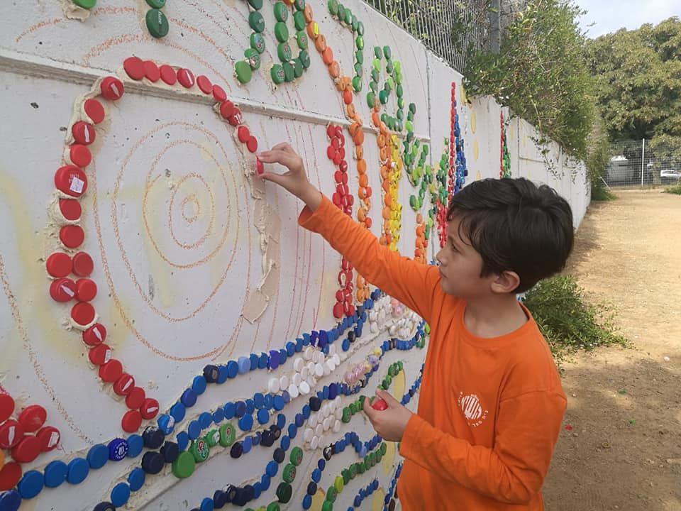 דואגים לאיכות הסביבה: תלמידי בית הספר הנשיא בבת ים יצרו ציור קיר מרהיב בעזרת שימוש חוזר בפקקים