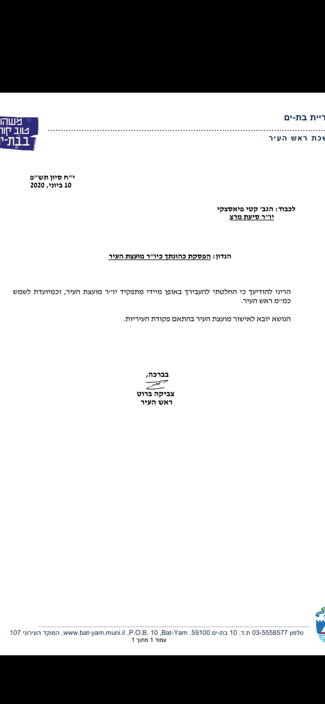 הדבר יובא לאישור מועצת העיר בהתאם לפקודת העיריות.