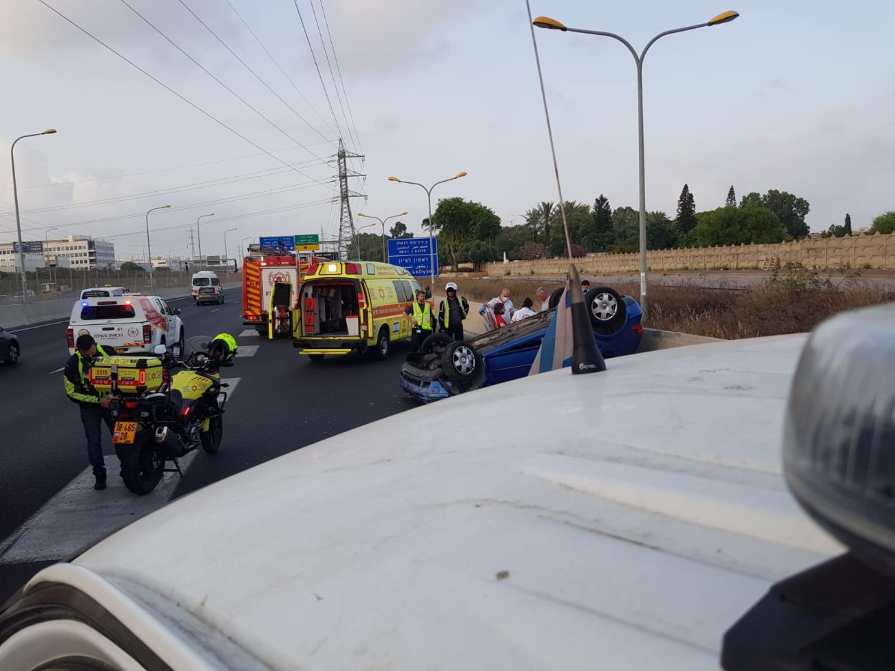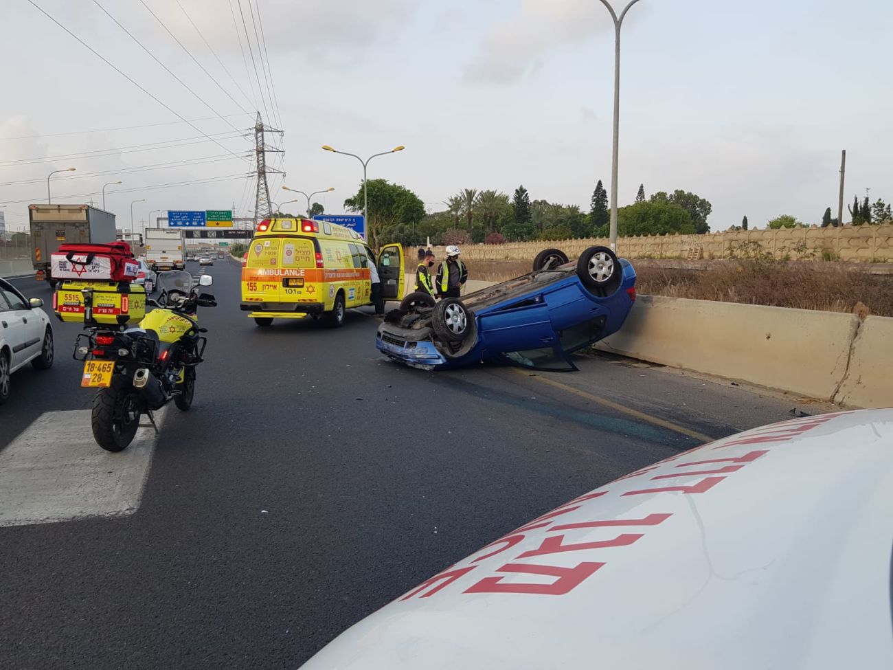 רכב התהפך בכביש 20 ליד מחלף משה דיין בראשון לציון
