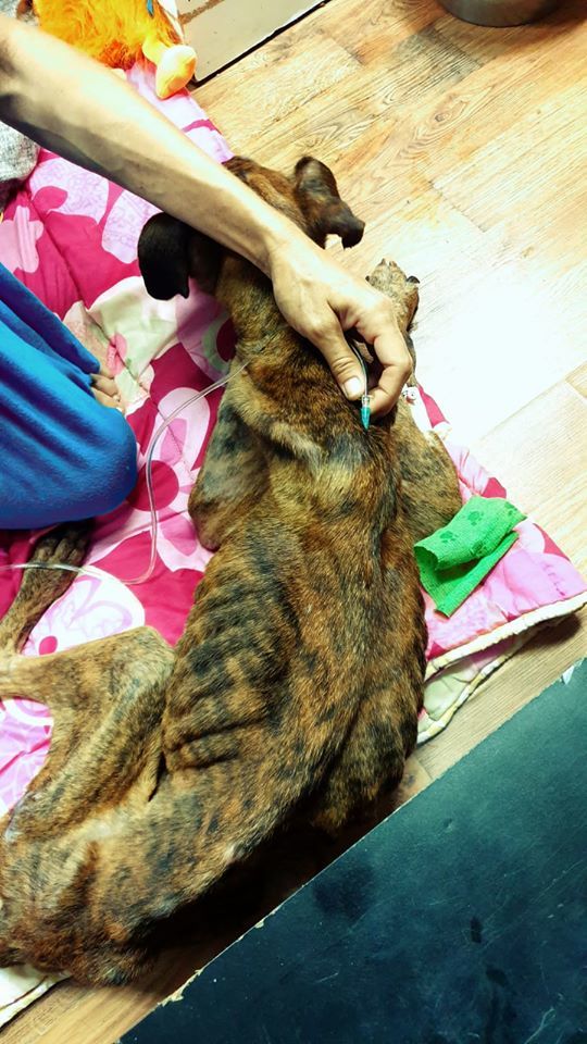 הכלב הגיע למצב של חוסר שרירים בגוף והיו חייבים לגרום לו לאכול על מנת שיתחזק קצת ויעלה במשקל.