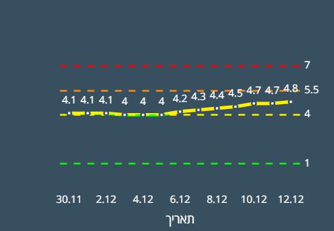 | תאריך | ציון יומי על פי תוכנית הרמזור | חולים חדשים לכל 10,000 איש | אחוז הבדיקות החיוביות | מספר החולים הפעילים |