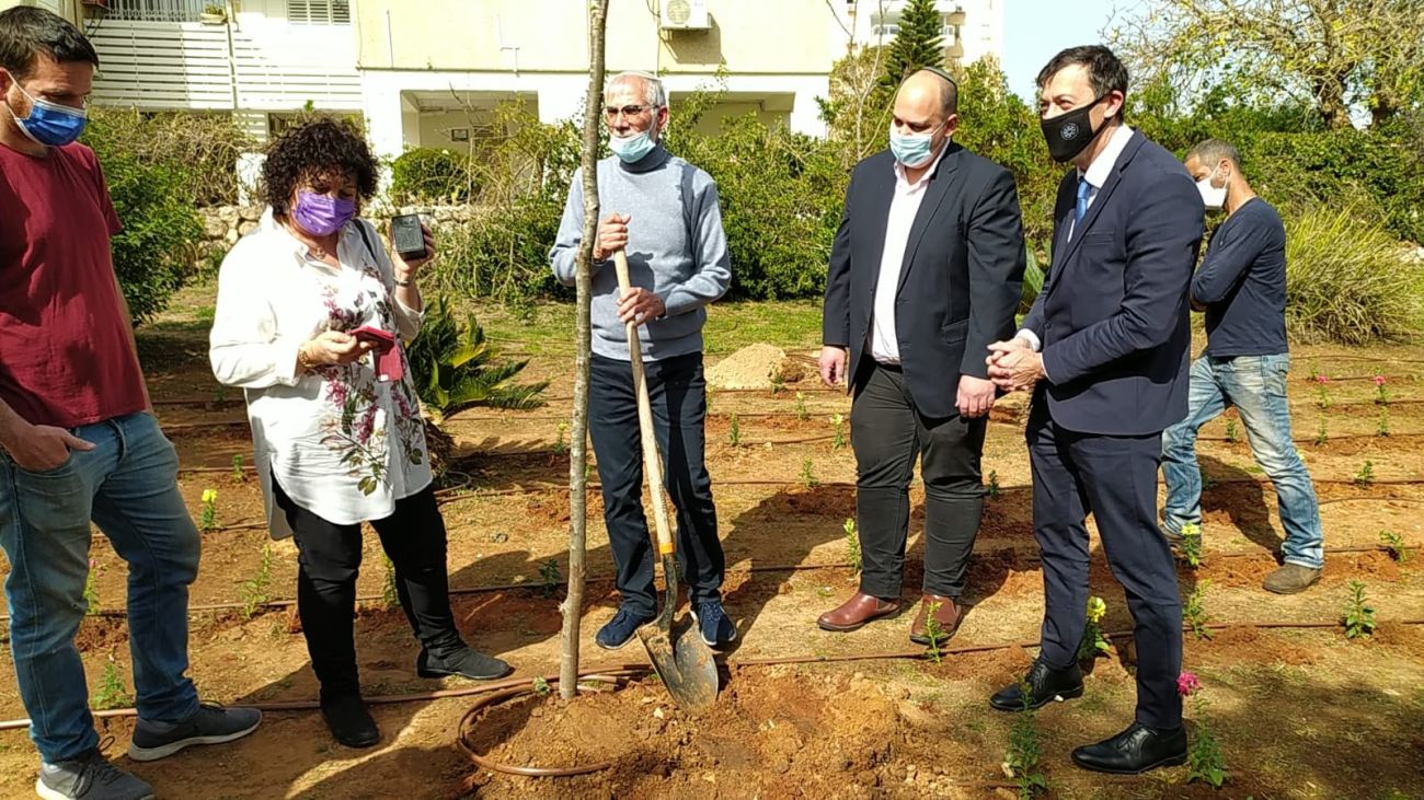 ראש עיריית בת ים, צביקה ברוט, אורי בוסקילה ושגריר מקדוניה בישראל קיימו טקס נטיעת עצים לזכרם של יהודי ביטולה שנרצחו בשואה