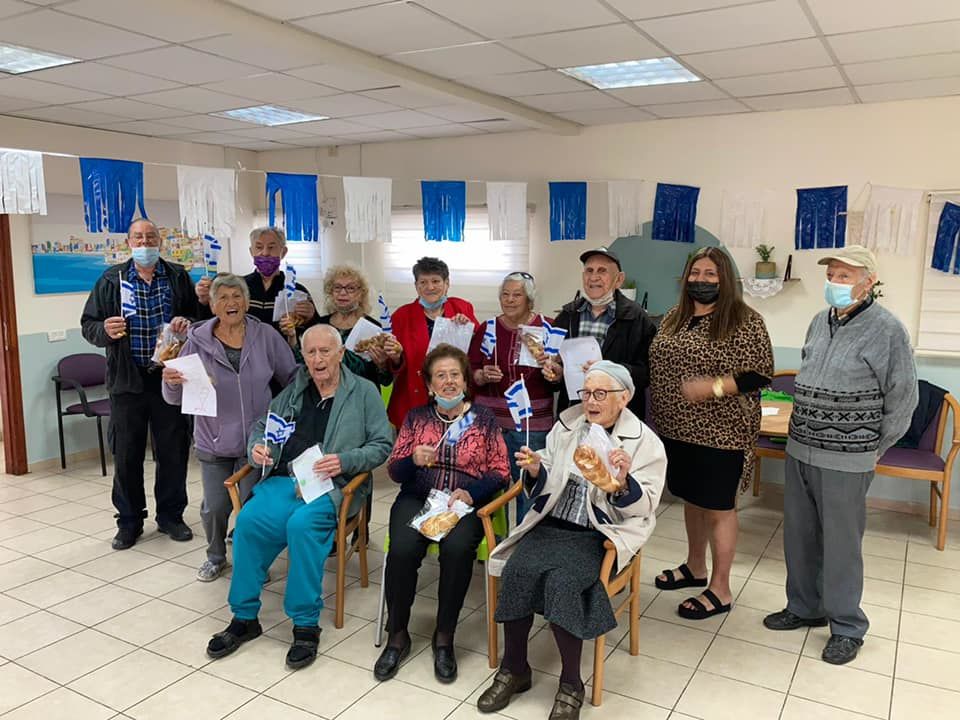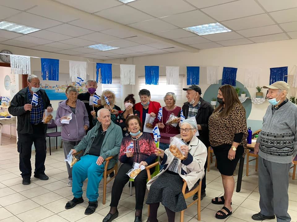 לרגל יום העצמאות שלומית מצליח, ואורלי דהאן, מבית הספר הרצל בבת ים יצאו לשמח את ניצולי השואה עם חלות וברכות מהתלמידים