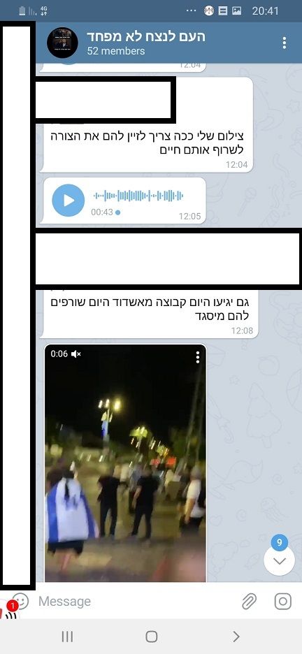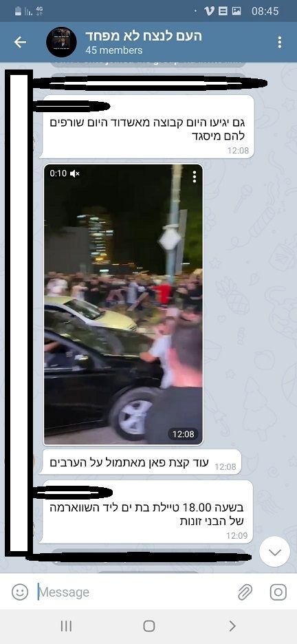 בקבוצה החל דיון איך לנקום על השתוללות של ערבים בלוד ובמקומות שונים בארץ כמו בעכו ועוד.